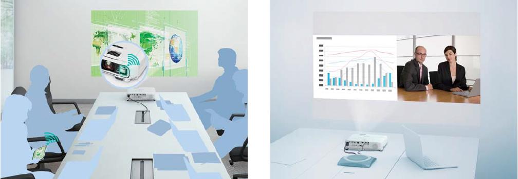 Tận hưởng kết nối nâng cao và tính linh hoạt với kết nối Wi-Fi tích hợp. Dễ dàng chia sẻ và truyền hình ảnh, văn bản và tập tin từ các thiết bị thông minh của bạn bằng cách sử dụng ứng dụng Epson Epson iProjection, cho các dự đoán thông minh và mượt mà.